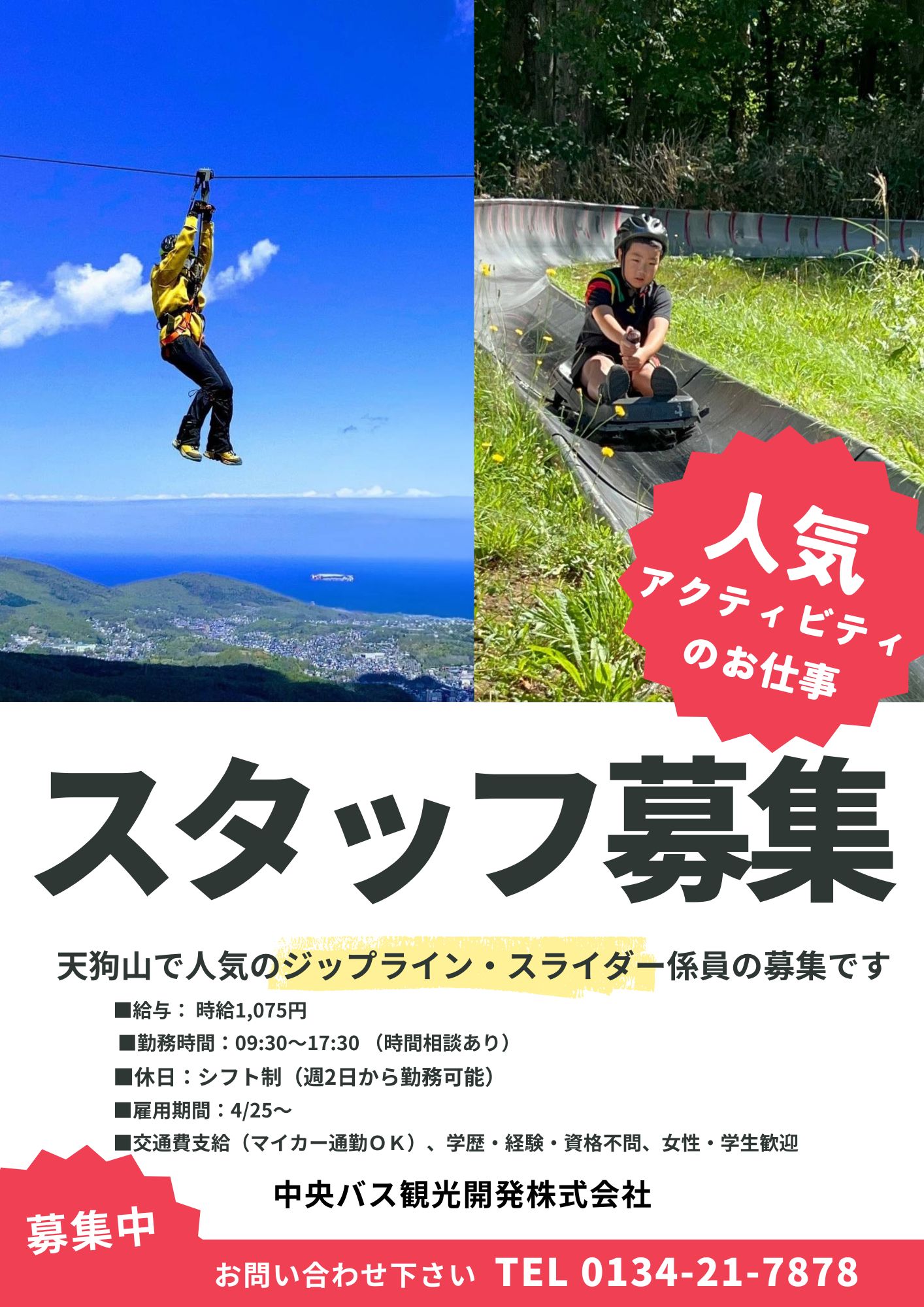 街並みを一望しながら全長128mを駆け抜ける「TENGUUジップライン」や、標高約530mから大空へ舞い上がる「TENGUU熱気球」など、胸が高鳴るアクティビティが充実。草原を爽快に滑る「天狗山スライダー」や、かわいいシマリスに出会える「シマリス公園」もあり、大人も子どもも夢中になれる楽しさが広がります。