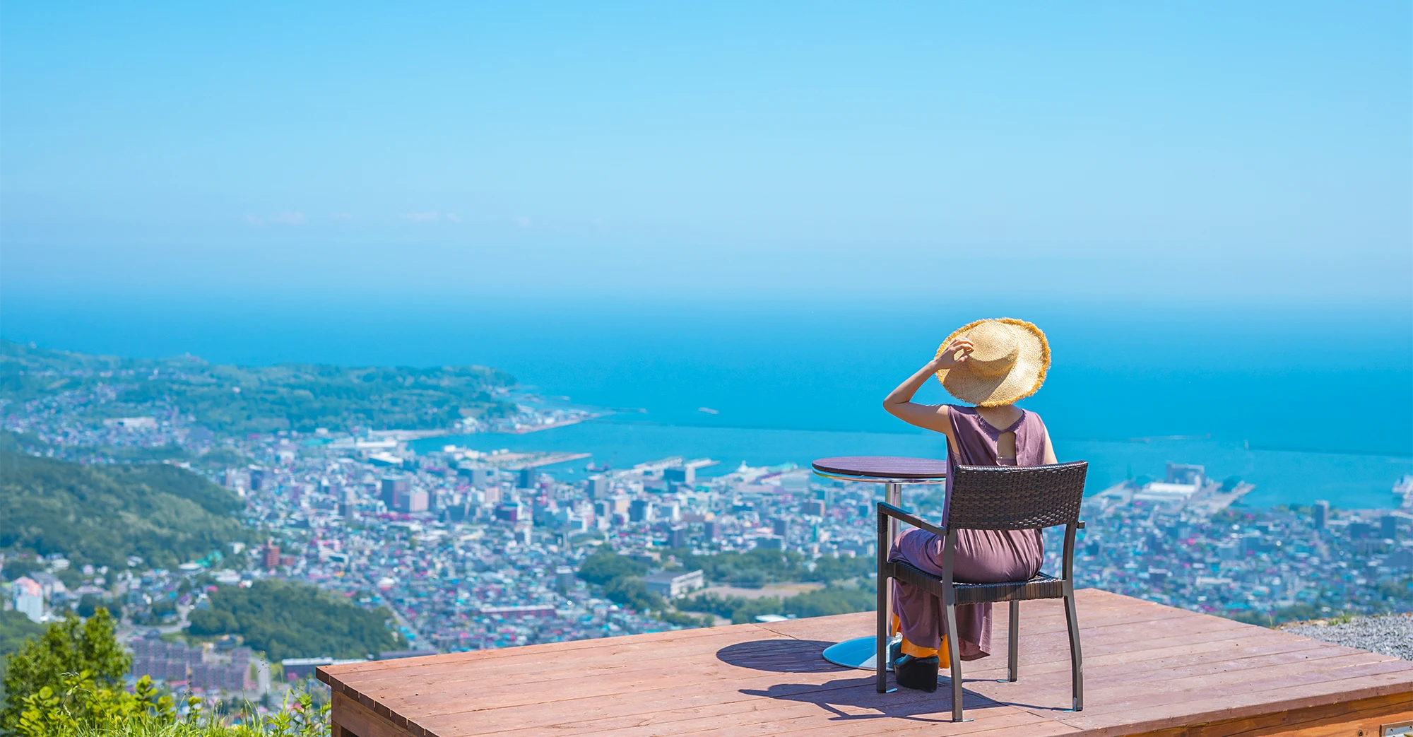眼下には箱庭のように市街が開けており、小樽港や石狩湾、晴れた日には遠く暑寒別連峰や積丹半島が一望できる絶好のビューポイント。