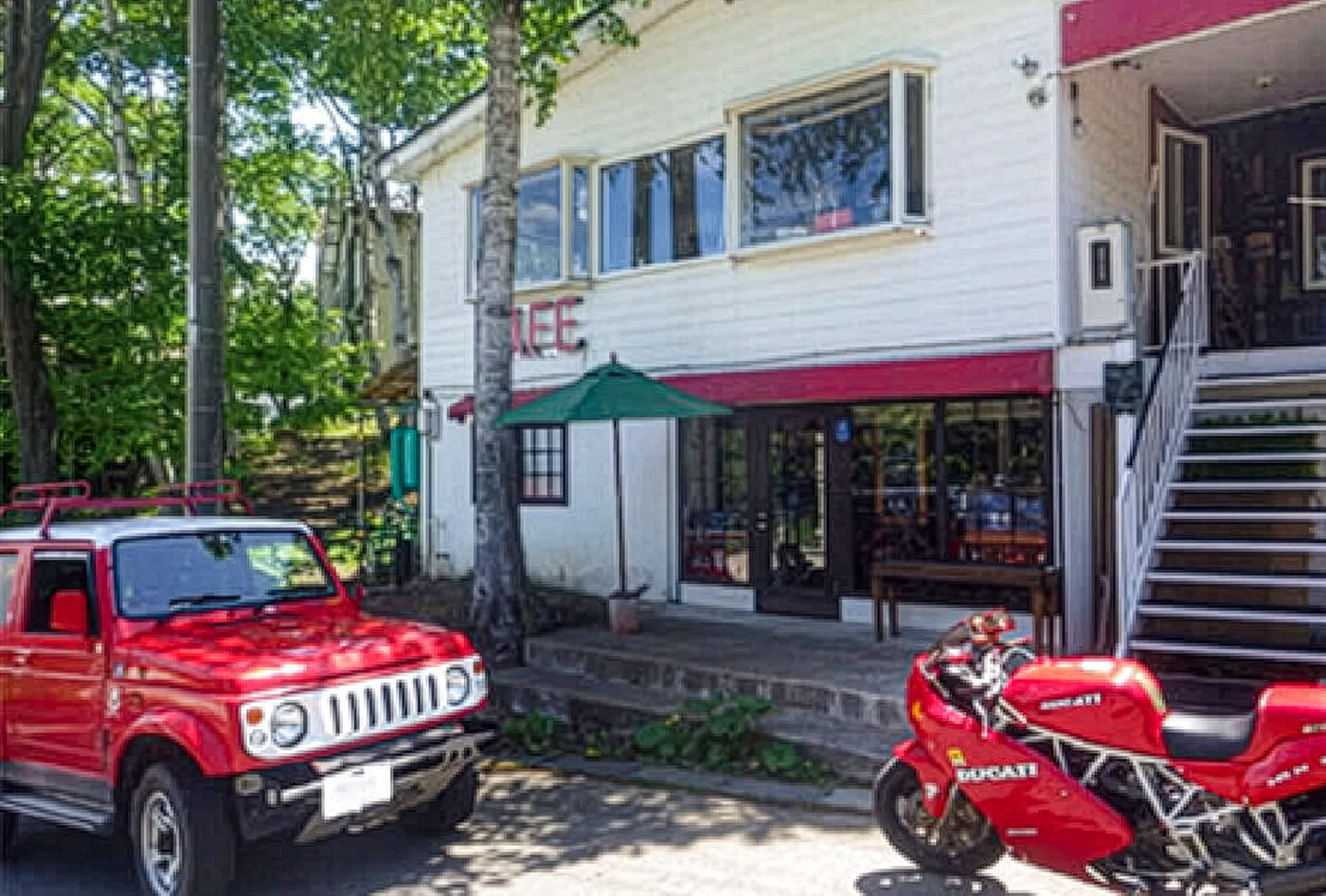 ロープウエイ乗り場近く、森に囲まれたカフェ。階段を上がった先にある、片側全面窓の山小屋のような空間で、淹れたてのコーヒーや手作りケーキ、キッシュ、アイスクリーム、自家製カレーランチなどをお楽しみいただけます。晴れた日は遠くに海を望み、雨の日はしっとりとした緑を眺めながら、おひとりでもご友人とでも、ゆったりとした時間をお過ごしください。