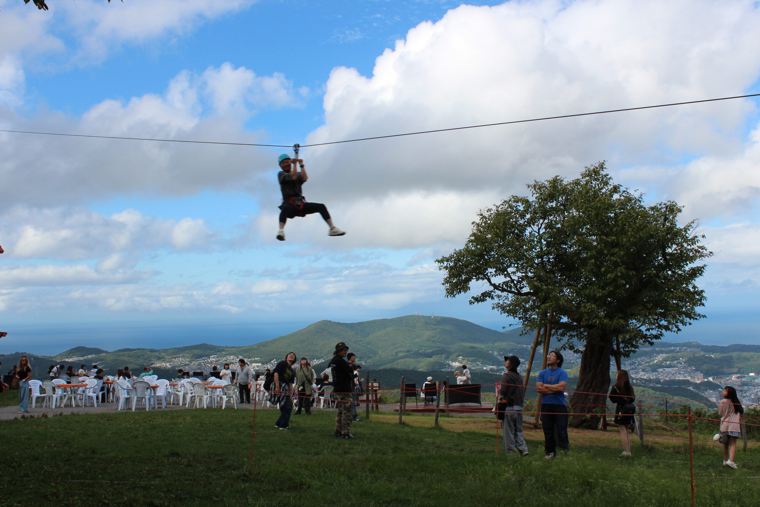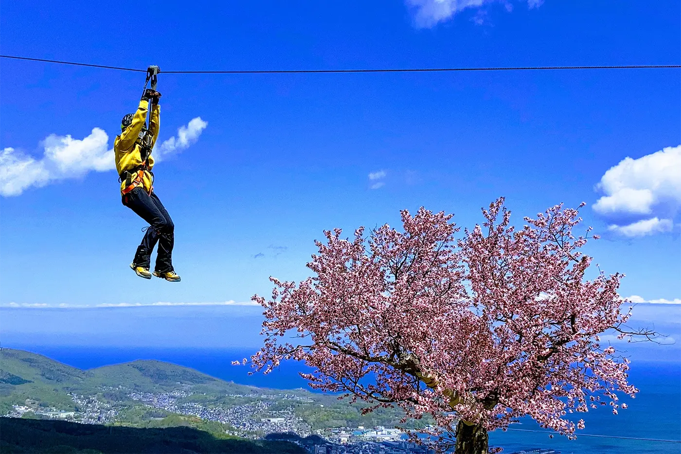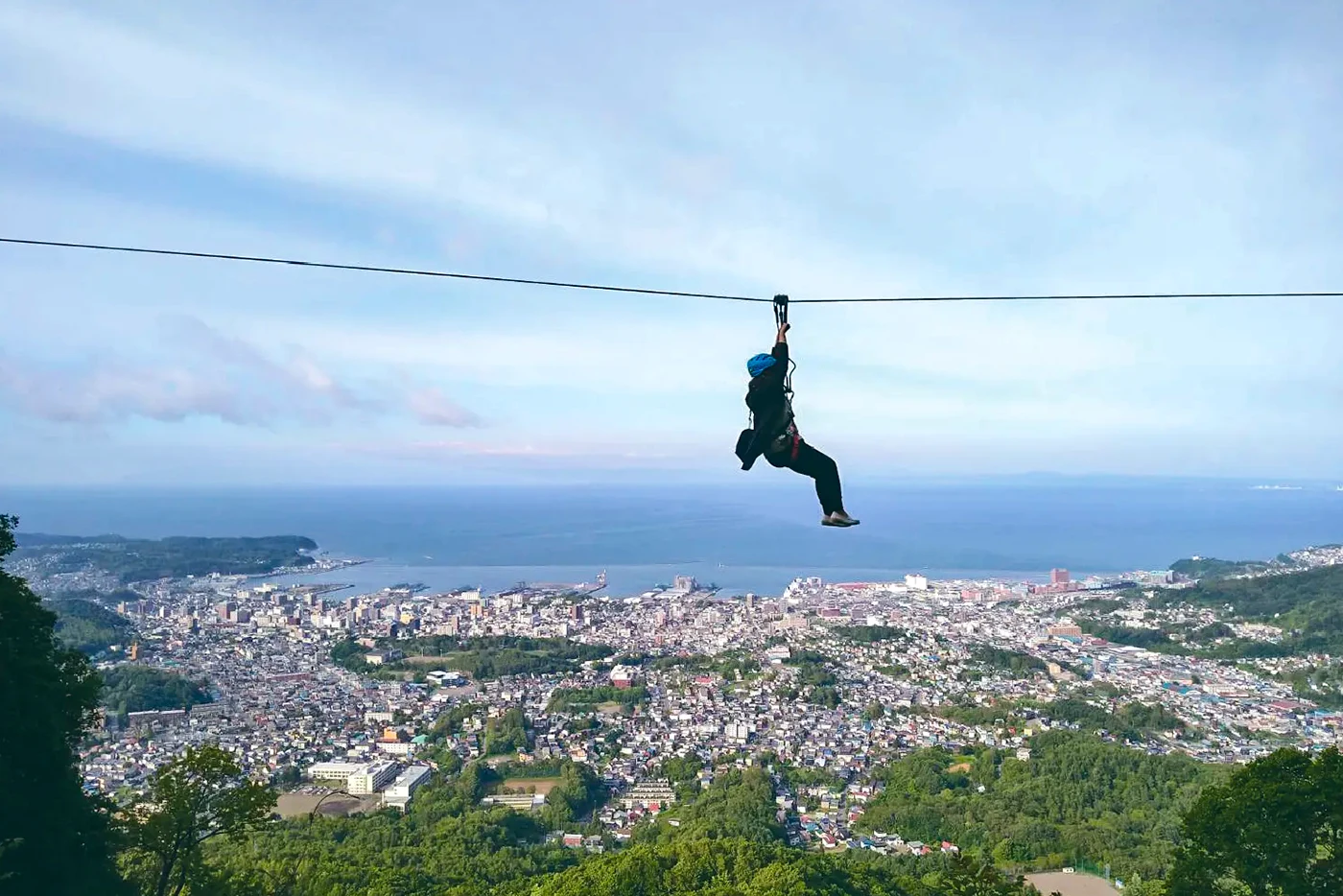 一邊感受微風,一邊眺望城市和日本海的滑索。此外,如果您乘坐熱氣球翱翔天空,360 度的壯麗景色正等著您。